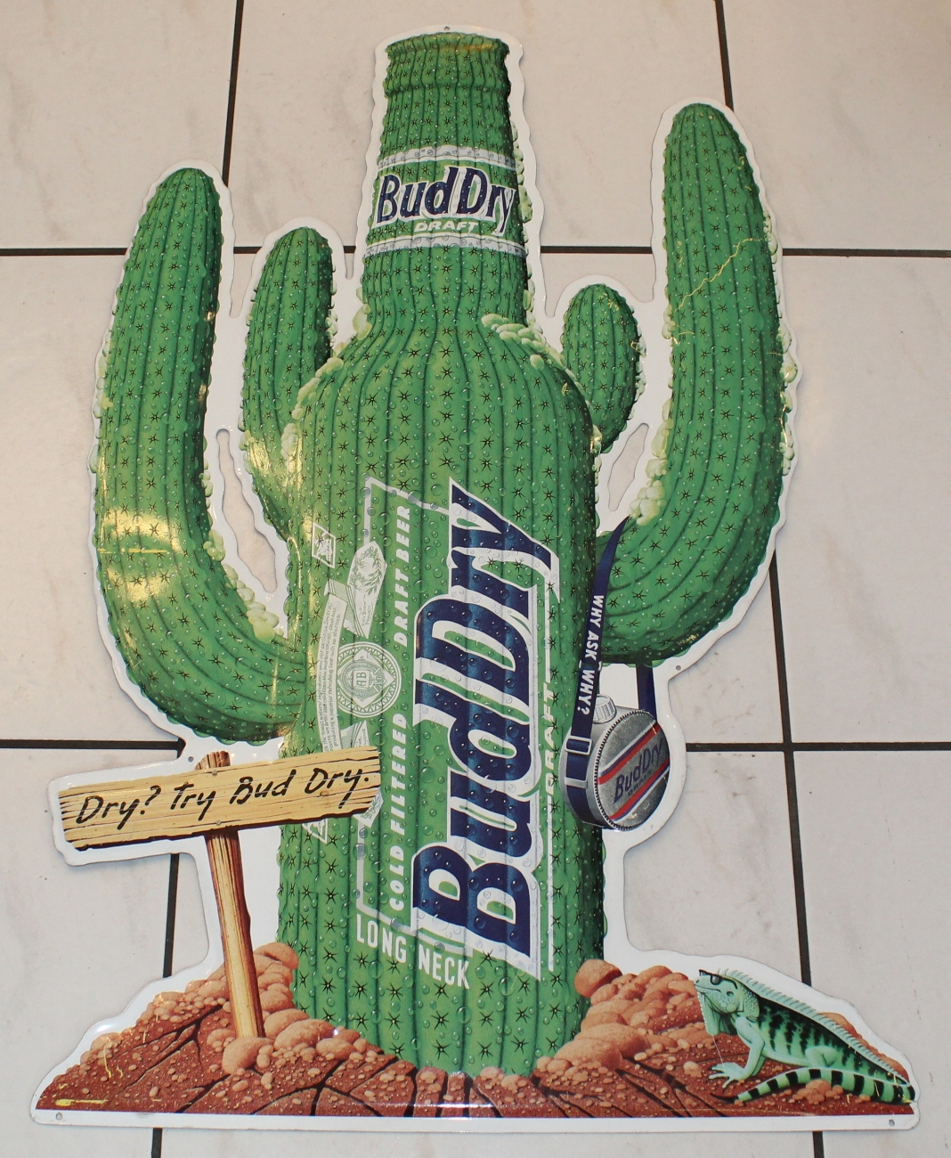 Originales Bud Dry Beer Cactus Blechschild aus den USA, ca. aus den 90er Jahren, minime Kratzer, Breite: 53cm, Höhe: 98cm.