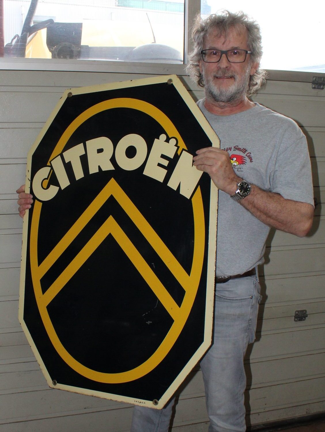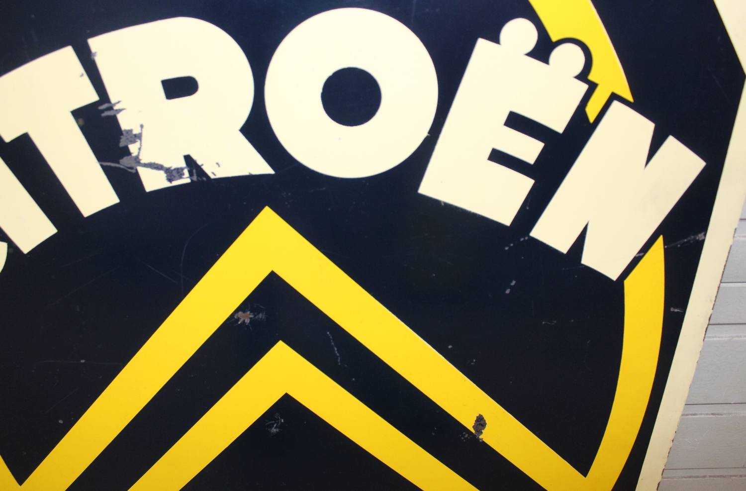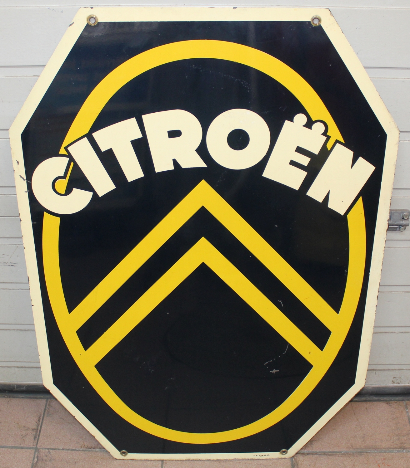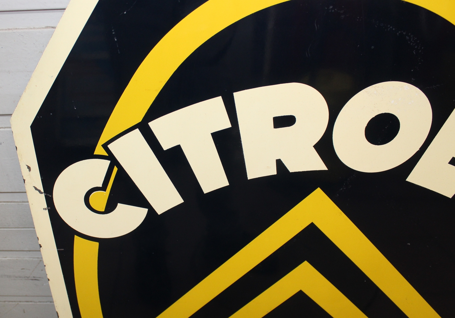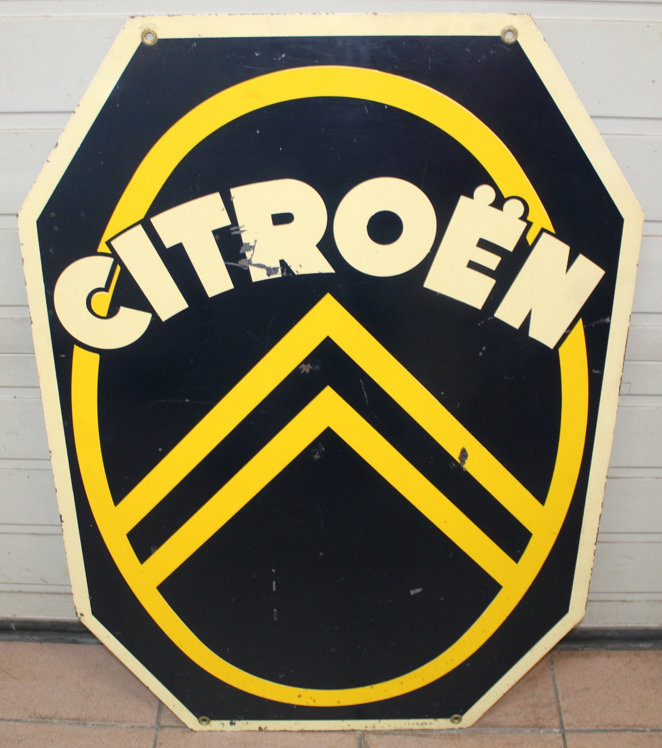 Originales sehr seltenes doppelseitiges Citroën Blechschild aus Frankreich, ca. aus den 40er Jahren, Zustand sehr gut, minime Oberflächenkratzer, auf der Rückseite grössere Kratzer und im unteren Bereich Flecken, siehe Photos, Breite: 70cm, Höhe: 100cm, Rarität.
