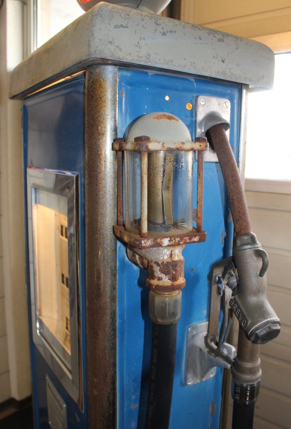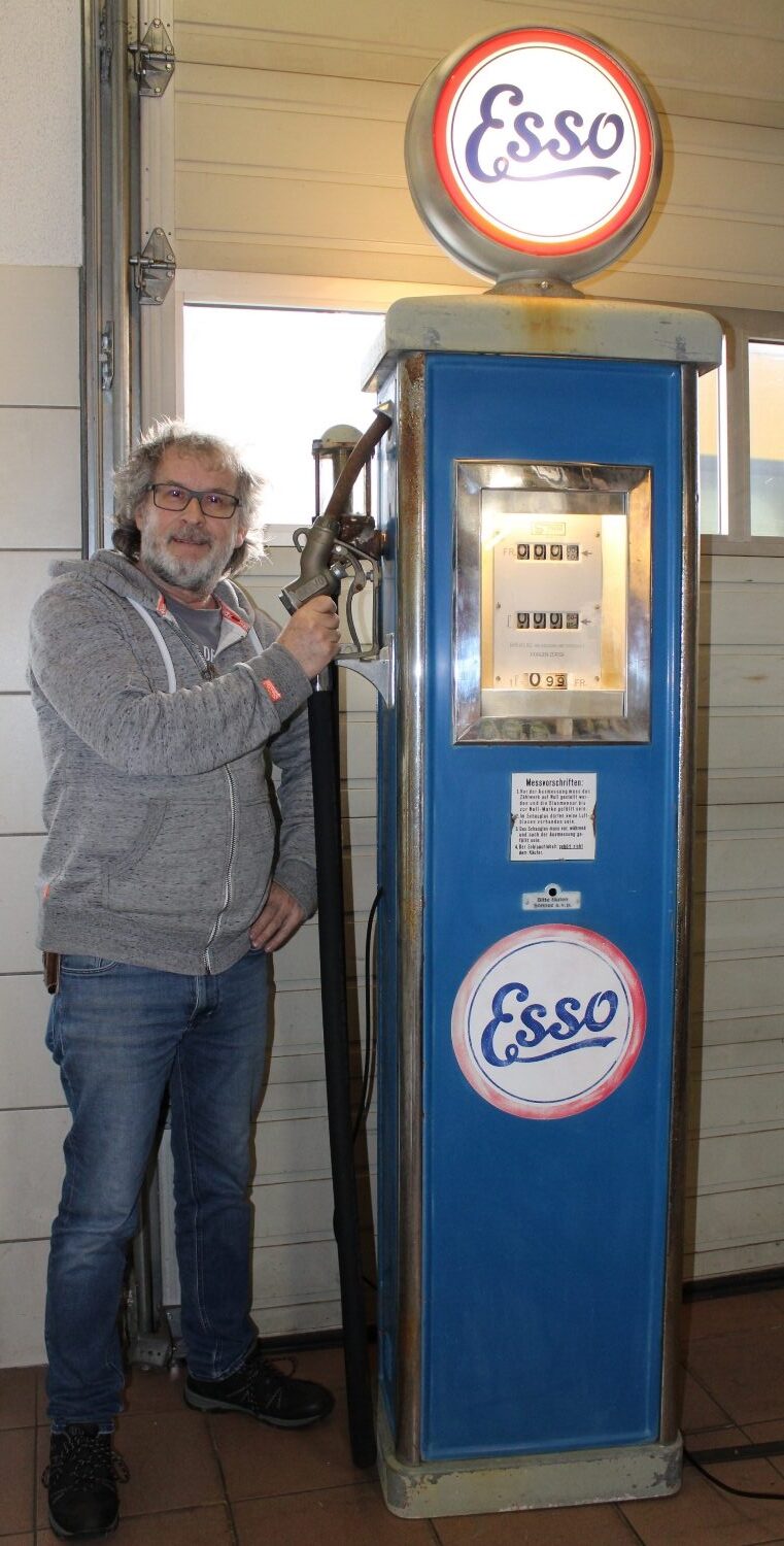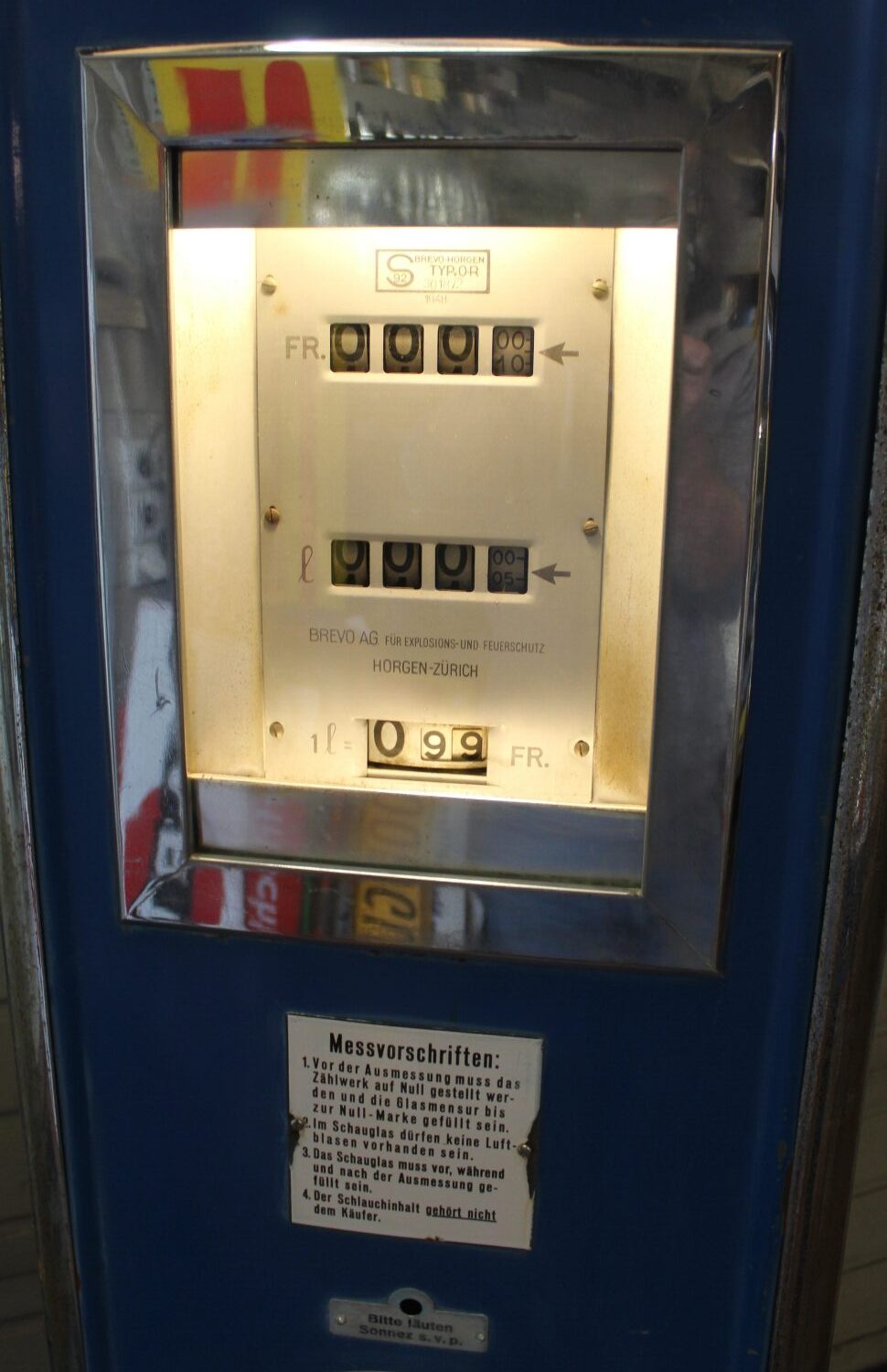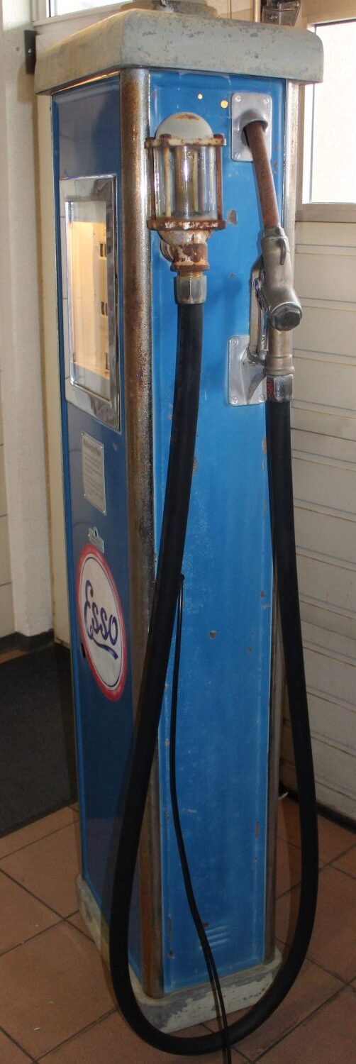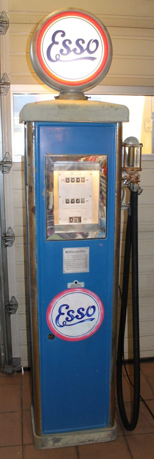 Originale Esso Brevo Tanksäule von 1948 aus der Schweiz, Zustand sehr gut, Esso Globe und Esso Aufkleber sind neu, Beleuchtung 230V wurd neu installiert, mit originalem Brevo Zapfhahn, die Tanksäule hat eine coole Patina, Höhe: 235cm.