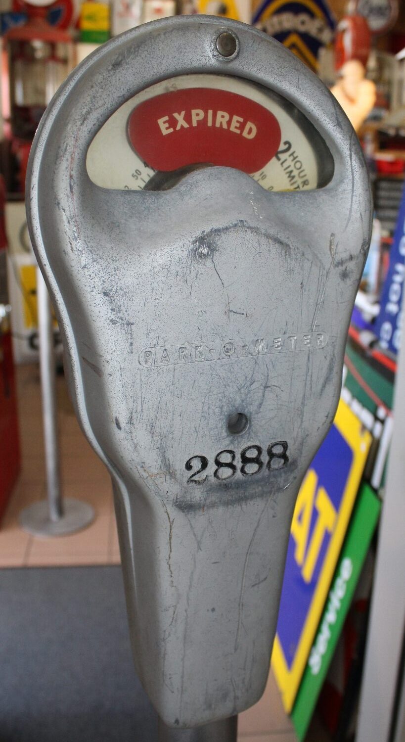 PARK-O-METER Parkuhr Nr. 2888 aus den 50er Jahren aus den USA, neuer Ständer, inkl. original Schlüssel, funktioniert mit US-Münzen, Höhe mit Ständer: 144cm.
