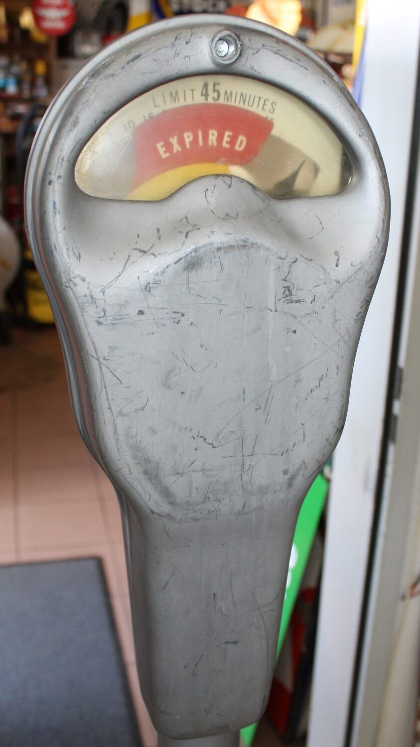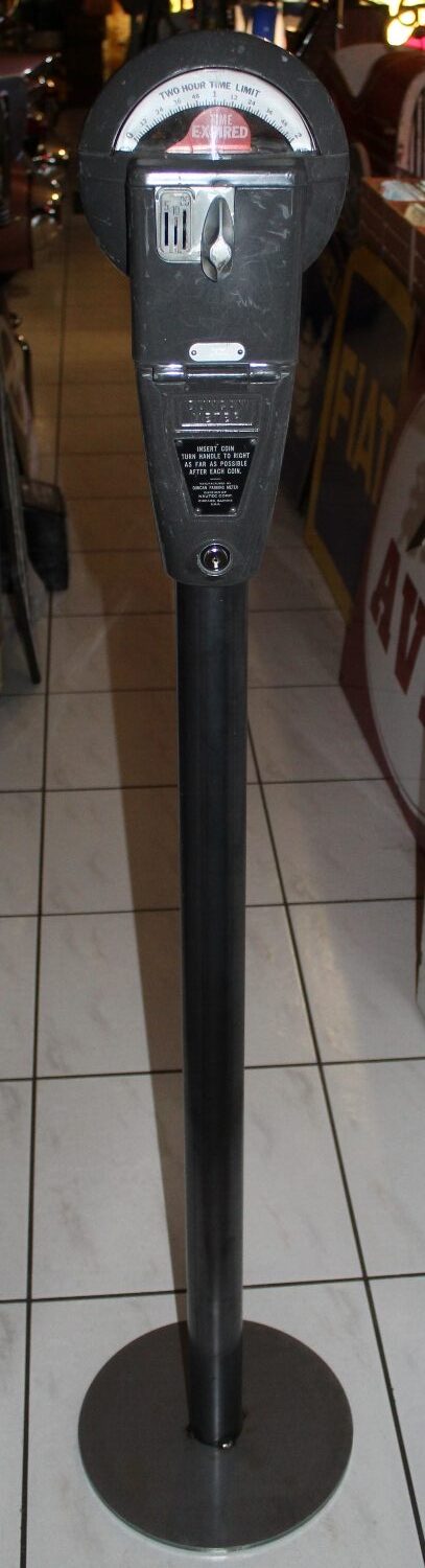 PARK-O-METER Parkuhr aus den 40er Jahren aus den USA, neuer Ständer, Schlüssel fehlen, lässt sich aber mit einem Schraubenzieher öffnen, funktioniert leider nicht, Höhe mit Ständer: 144cm.