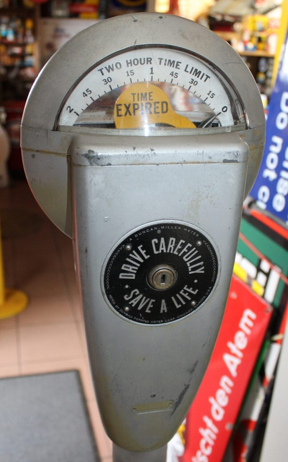 DUNCAN Parkuhr aus den 50er Jahren aus den USA, neuer Ständer,Schlüssel fehlen, aber lässt sich mit einem Schraugenzieher öffnen, neues Dome-Plexiglas, Kassenbehälter fehlt, funktioniert mit US-Münzen, Höhe mit Ständer: 140cm.