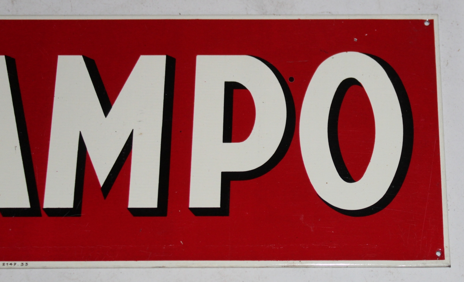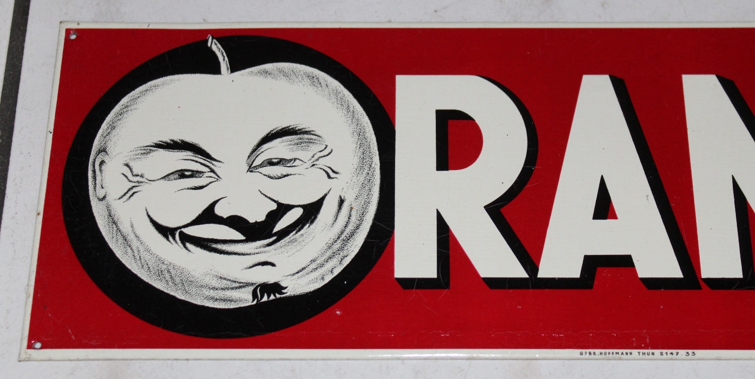 Originales „RAMPO“ Apfelsaft Blechschild aus den 30er oder 40er Jahren aus der Schweiz, Zustand sehr gut, vermutlich nie gehangen, Unten gemarktet mit: „GEBR. HOFFMANN THUN 2147.33“, Breite: 37.5cm, Höhe: 12cm.