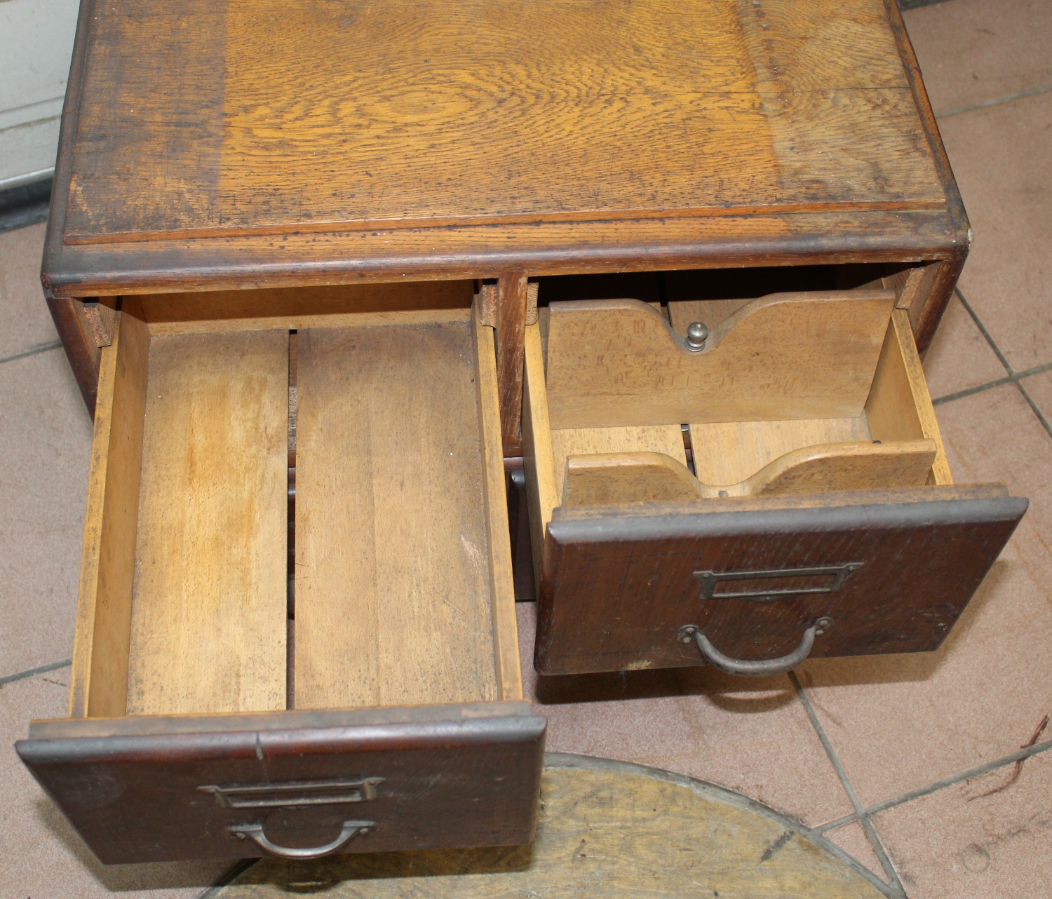 Originaler 4er Schubladenstock aus Holz aus der Schweiz aus einer Werkstatt, ca. aus den 30er-40er Jahren, Zustand gut, Breite: 51cm, Tiefe: 40.5cm, Höhe: 40.5cm.