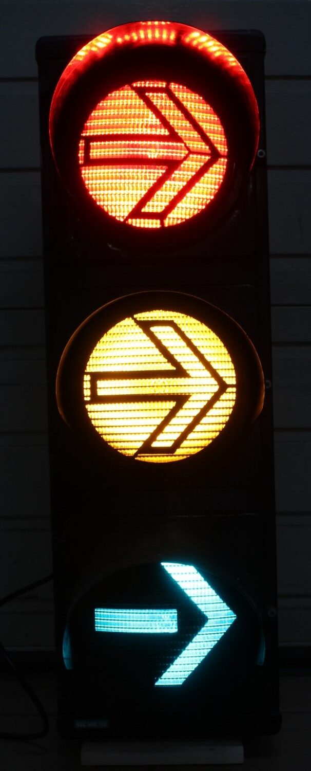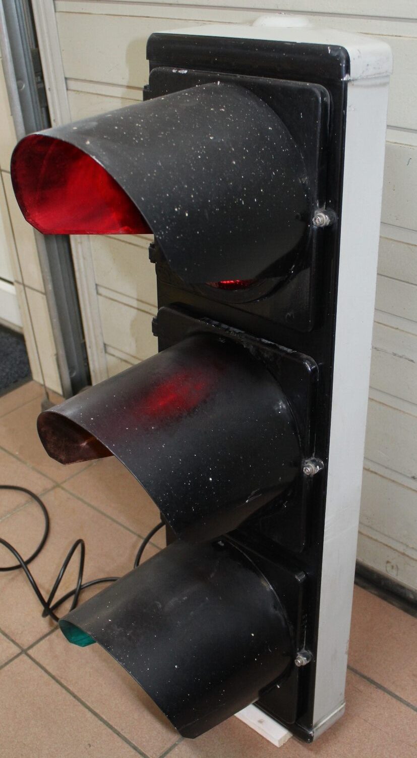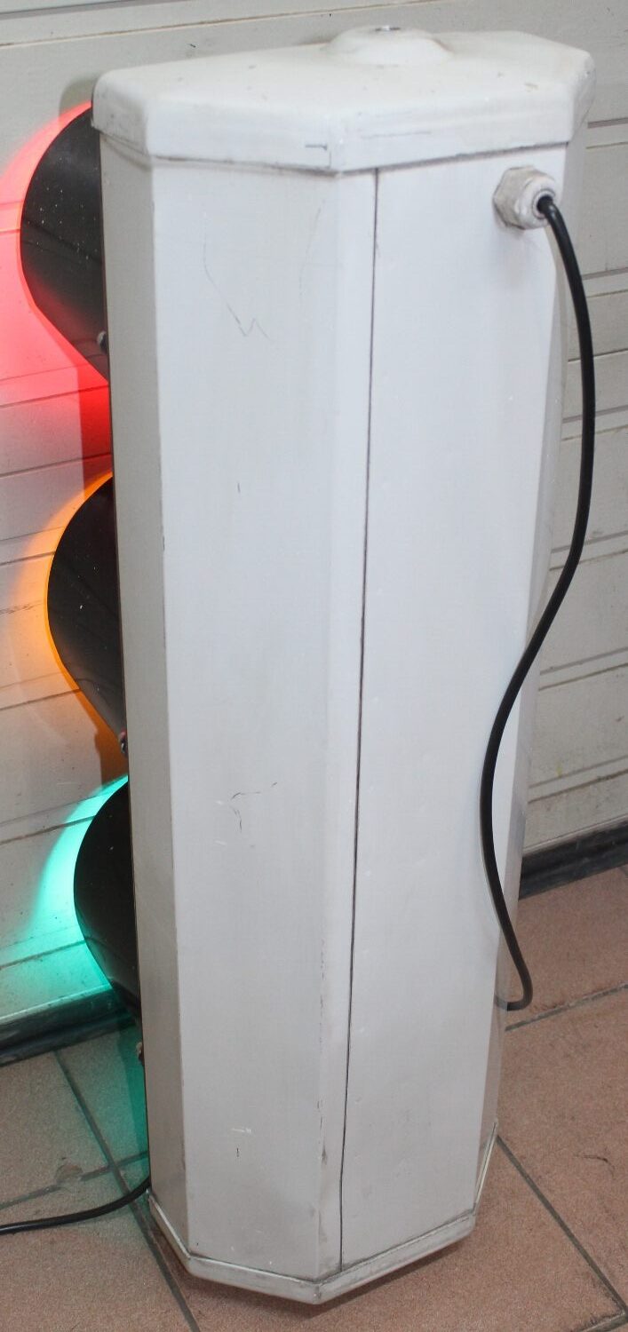 Originale Strassenampel von Siemens aus der Schweiz, ca. aus den 80er Jahren, Zustand sehr gut, Gehäuse aus Aluminium, die Beleuchtung wurde schon auf LED-Technik umgebaut, Kabel wurde erneuert, Höhe: 90cm.
