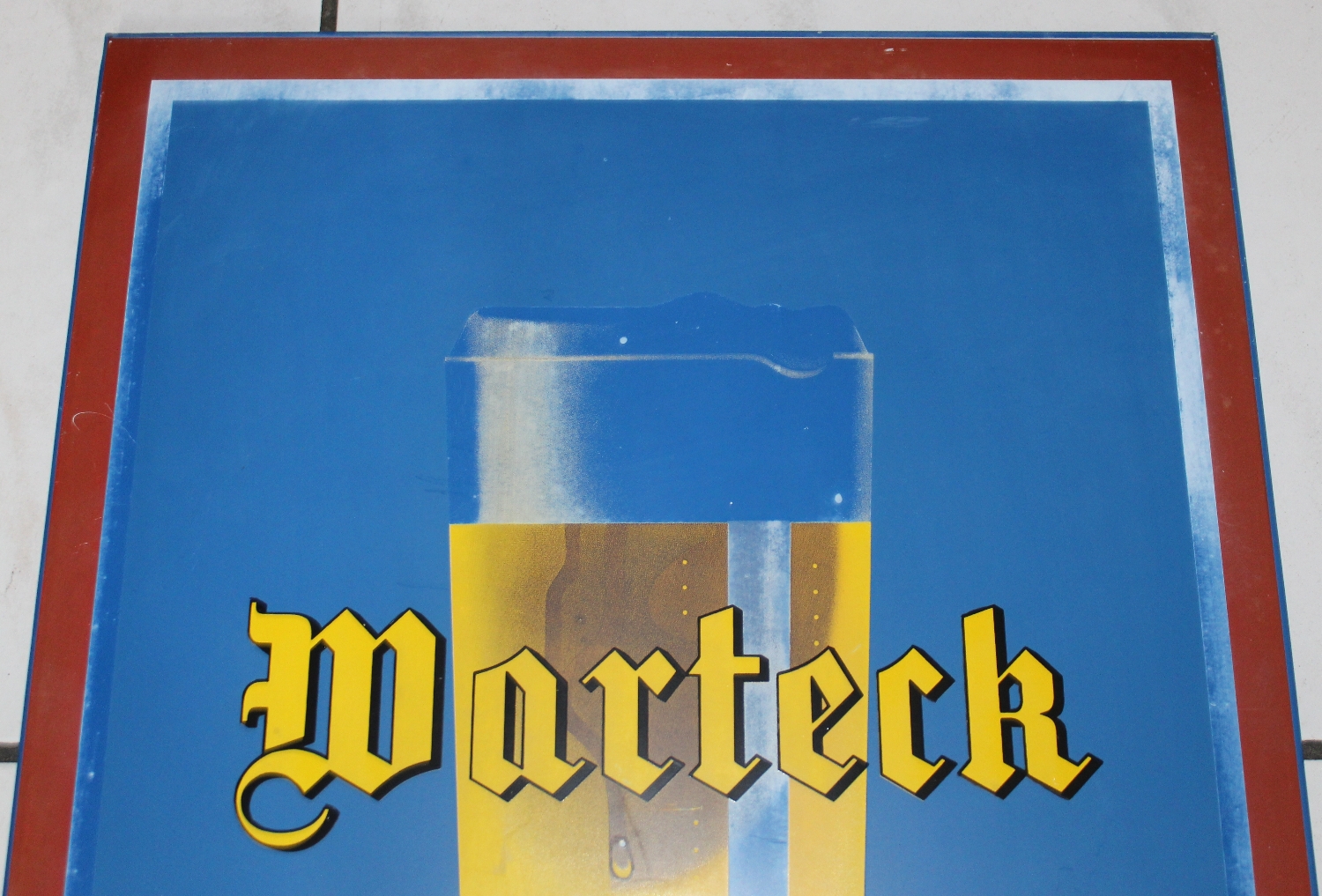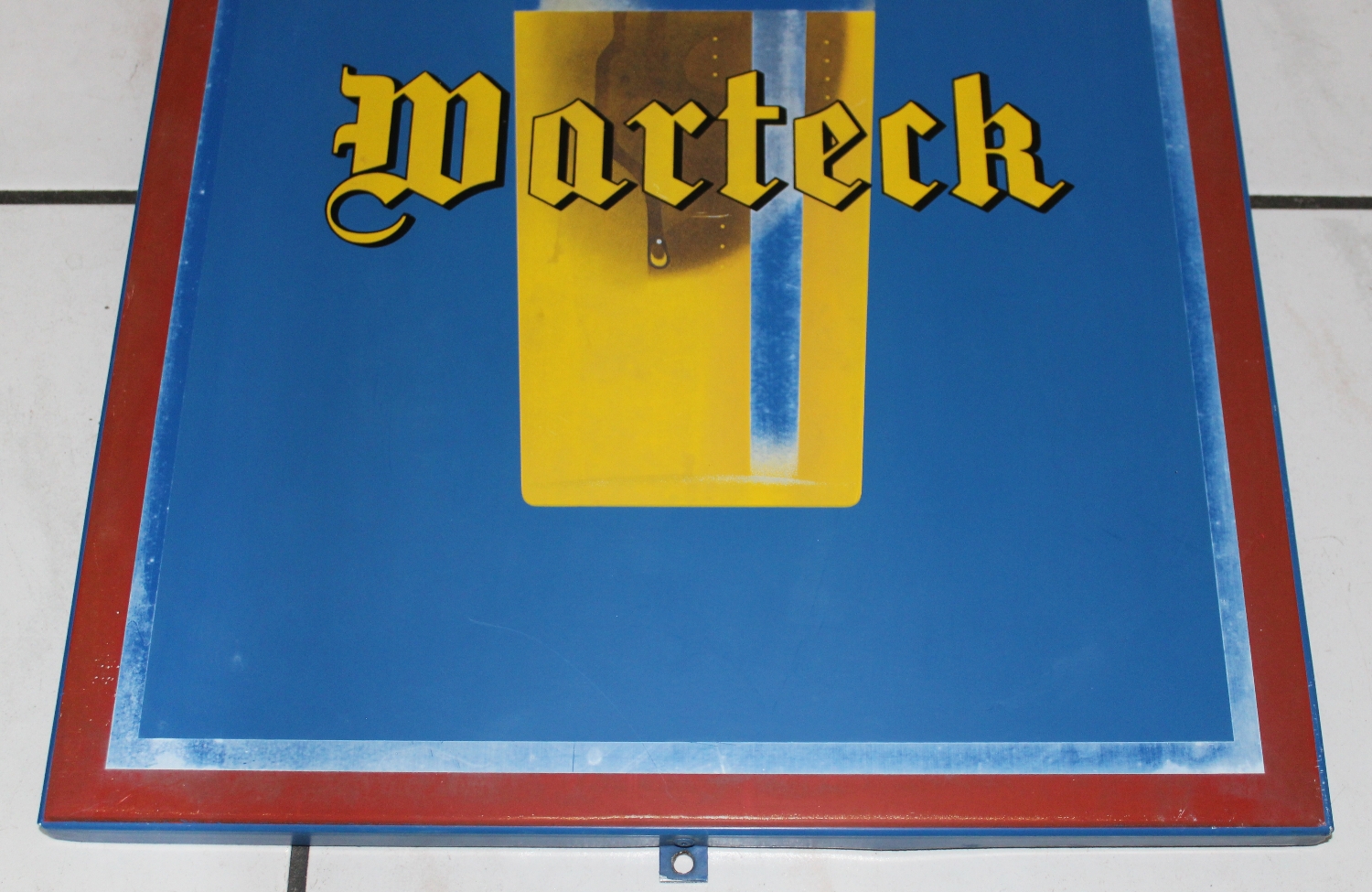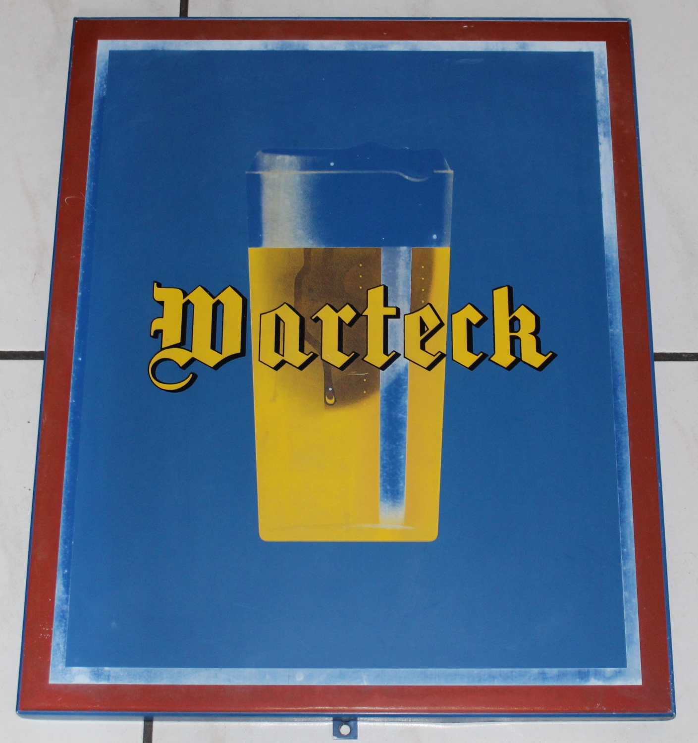 Originales „Warteck Bier“ Blechschild aus der Schweiz, ca. aus den 50er oder 60er Jahren, Zustand gut, der weisse Rand ist etwas abgerieben, minime Oberflächenkratzer, Höhe: 50cm, Breite: 40cm.